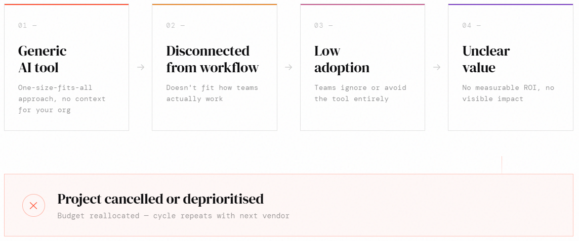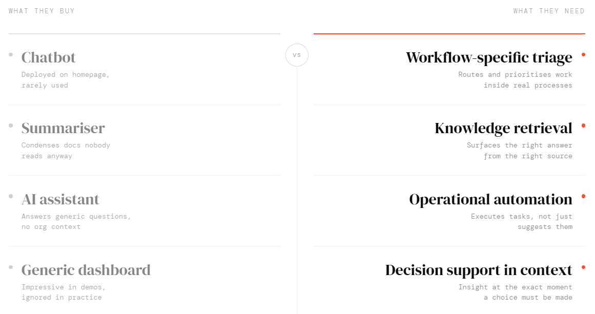 When organisations deploy generic AI tools into that environment without first understanding the workflow, the result is usually disappointing. The tool may be impressive in isolation, but disconnected from the context in which people actually work.